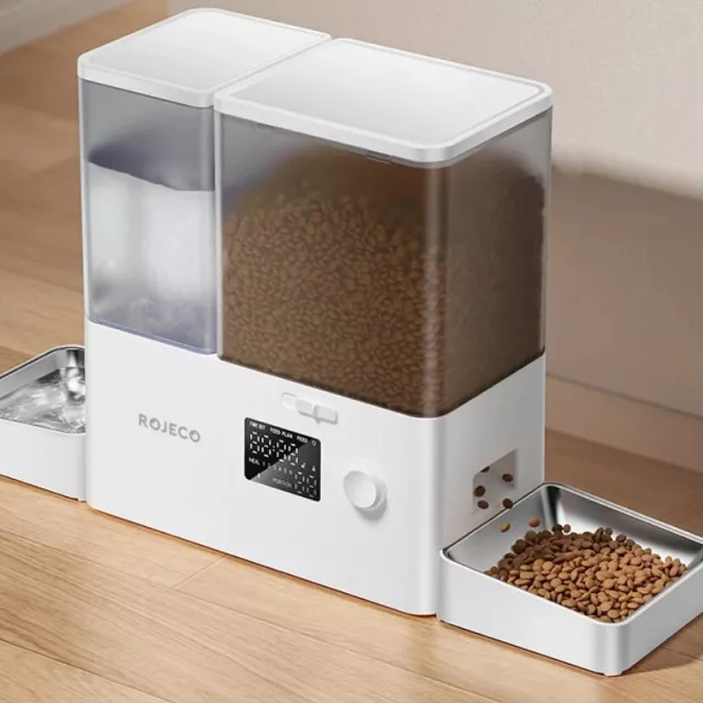 The sleek design fits well into any home, and its robust plastic construction ensures durability while keeping your pet’s food fresh. The large 2L capacity ensures you don’t have to constantly refill, and the 340 stainless steel bowl is not only hygienic but also helps prevent any mess during mealtime.