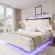 Queen Bed Frame with Storage Headboard, LED Lights & Charging Station
